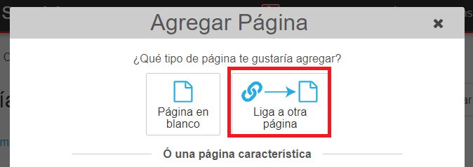 Agrega un vínculo a tu menú de sección el cual abre una página que está fuera de esta sección. El enlace puede abrir algo ya sea dentro de tu sitio web o en cualquier otro sitio web.