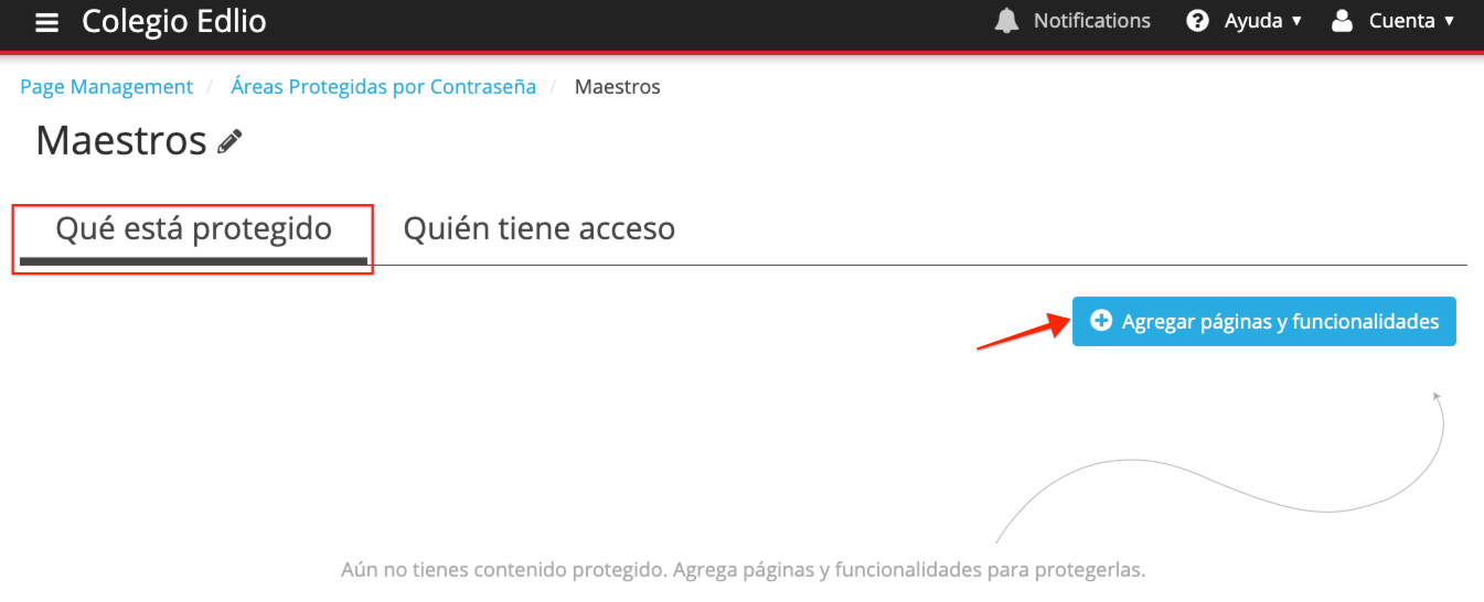 Agrega páginas y funcionalidades a un Área Protegida