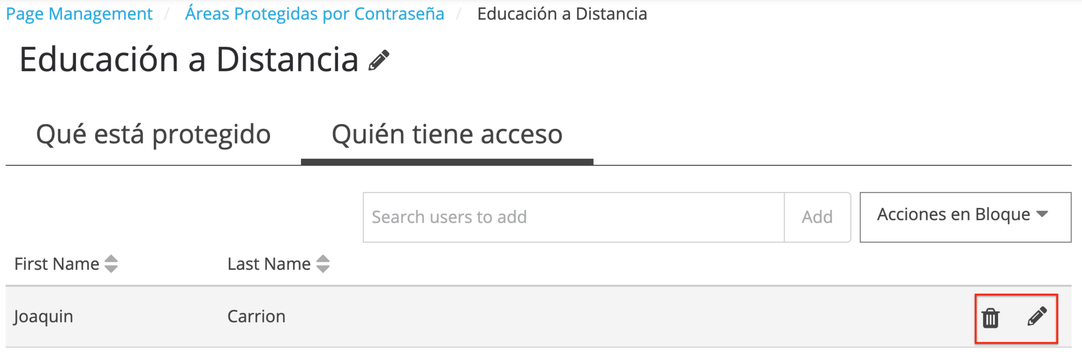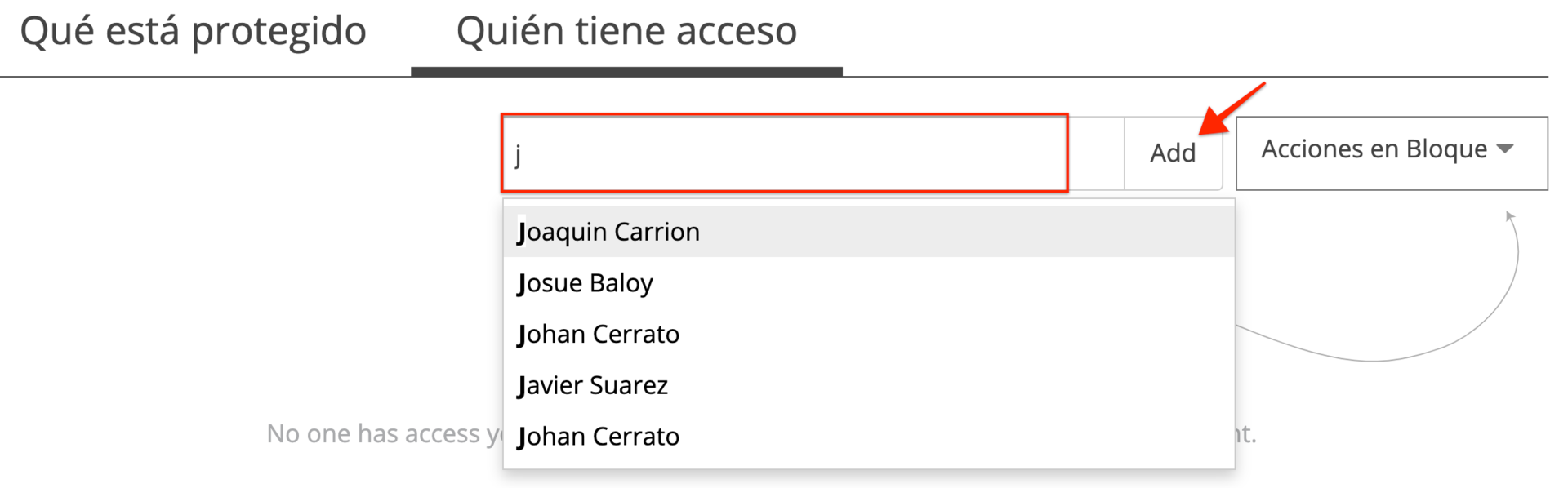 Usuarios con acceso a un áreas protegida estarán en listados en la pestaña de "Quién tiene acceso".
