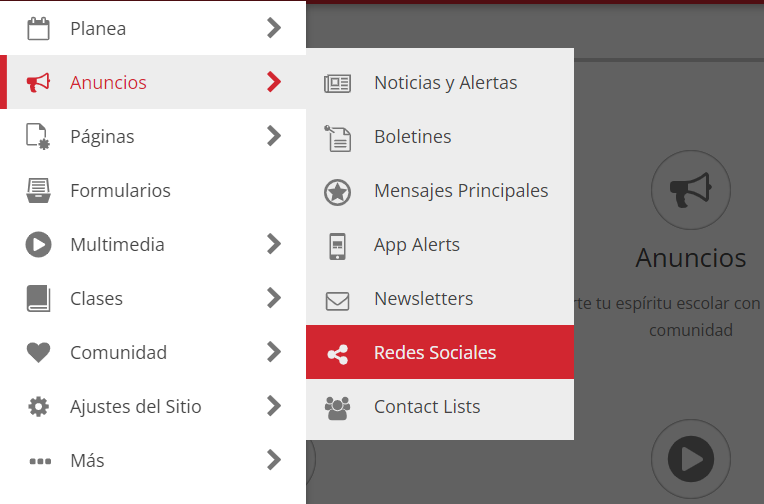 También puedes accesar a Redes Sociales utilizando el menú de hamburguesa que se encuentra en la esquina superior izquierda.