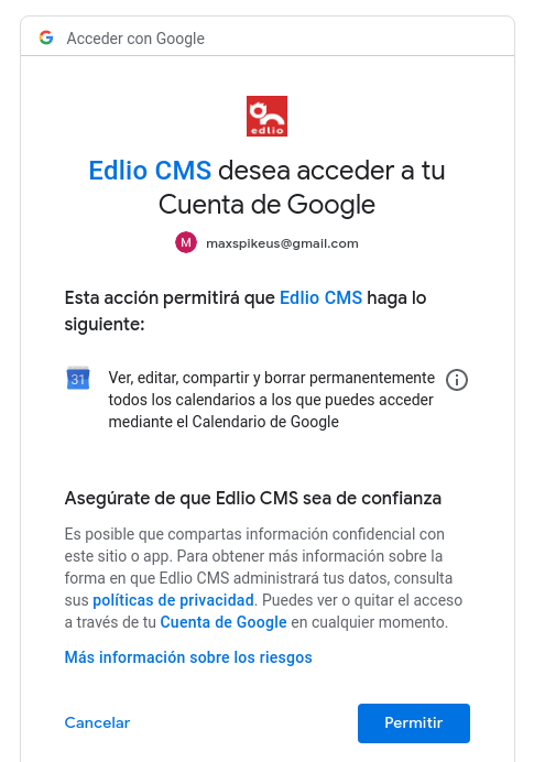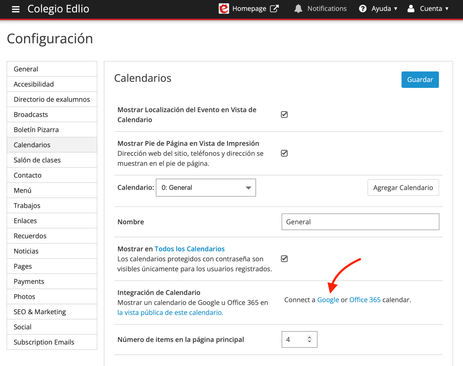 Integrar un calendario de Google al Calendario de Edlio