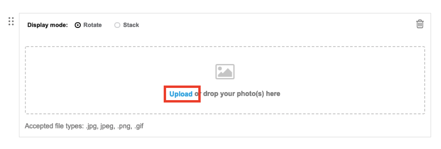 1. Cuando te encuentres con la opción de subir multimedia o archivos, simplemente da clic en "upload".